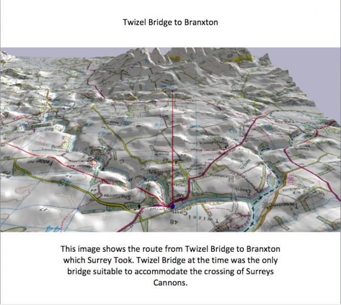 During the Scottish Campaign of 1513, it is likely that parts of both armies crossed the bridge. The Scots on the way from Coldstream to Norham in late August and the English on the morning of the battle. Accounts indicate that the English Vanguard, including the English artillery, crossed the Till at Twizel on the morning of the 9th of September 1513, on the way from Barmoor to Braxton. We must assume that Surrey had been made aware of its existence, as it was vital to his outflanking strategy, as the only secure means of getting his artillery across the River Till.