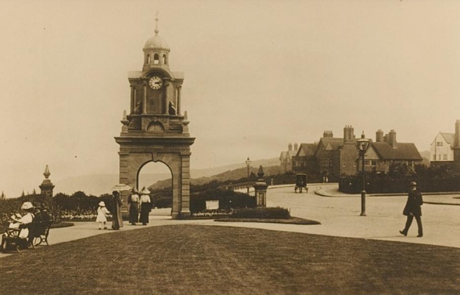 A the turn of the last century the much of South Cliff was still open countryside with a selection of fine houses and villas enjoying the rural tranquility. One visitor to his summer residence was Alfred Shuttleworth (1843 to 1925} businessman and philanthropist who presented the Wren style stone clocktower to the town in commemoration of George V's coronation, 22 June 1911.
